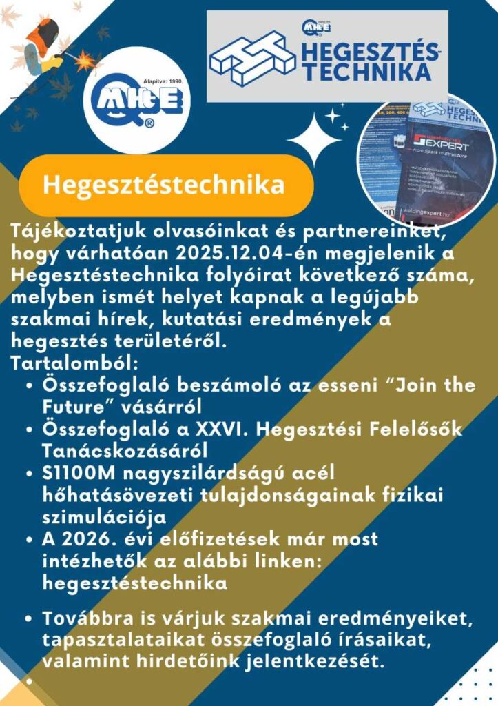 Hegesztéstechnika Hasonló cikkek2026.01.08.SzemélytanúsításRészletek2026.01.08.Hegesztési zsebkönyvRészletek2026.01.08.Nemzetközi gyártásellenőr képzésRészletek